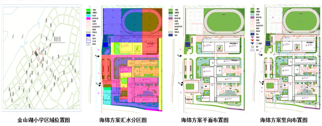 項目設計理念是建設具有自然積存、自然滲透、自然凈化功能的海綿型綠色校園。海綿s設施方案依據校園不同的功能分區(運動區、教學區、辦公區等)和基地條件,設置適合的海綿設施(雨水花園、生物滯留池、植草溝、綠色屋頂等),結合灰綠結合排水方式,實現校園防洪排澇、水質凈化、雨水利用等目標,從而調節了校園微氣候。